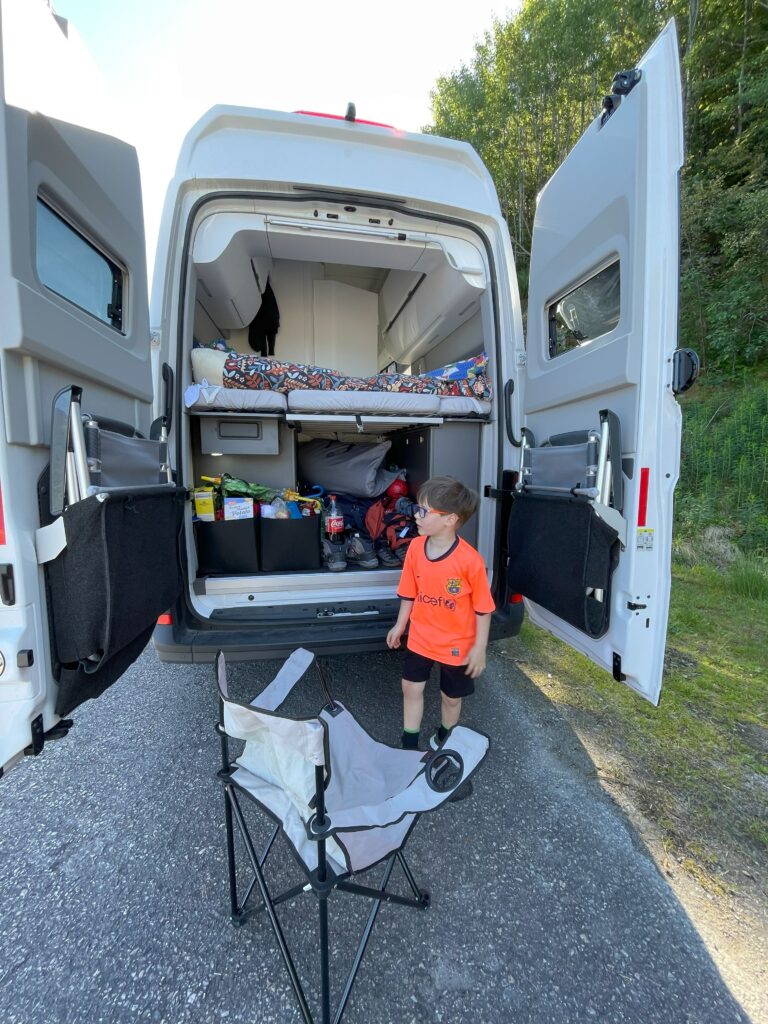 Norwegia ma świetną bazę noclegową dla caperów / campervanów z gęstą siecią kempingów w przyzwoitych cenach. Co jednak dla nas najważniejsze – w Norwegii można spać “na dziko” jeżeli nie jest to w danym miejscu wyraźnie zakazane. Z tej drugiej opcji korzystaliśmy zdecydowanie częściej, wybierając miejsca na nocleg na bieżąco, w zależności od tego jak ułożyła nam się trasa danego dnia. Korzystaliśmy z niezawodnej aplikacji Park4Night, gdzie można znaleźć zarówno miejsca kempingowe, darmowe lub niemal darmowe parkingi oraz miejsca do spania całkiem na dziko.