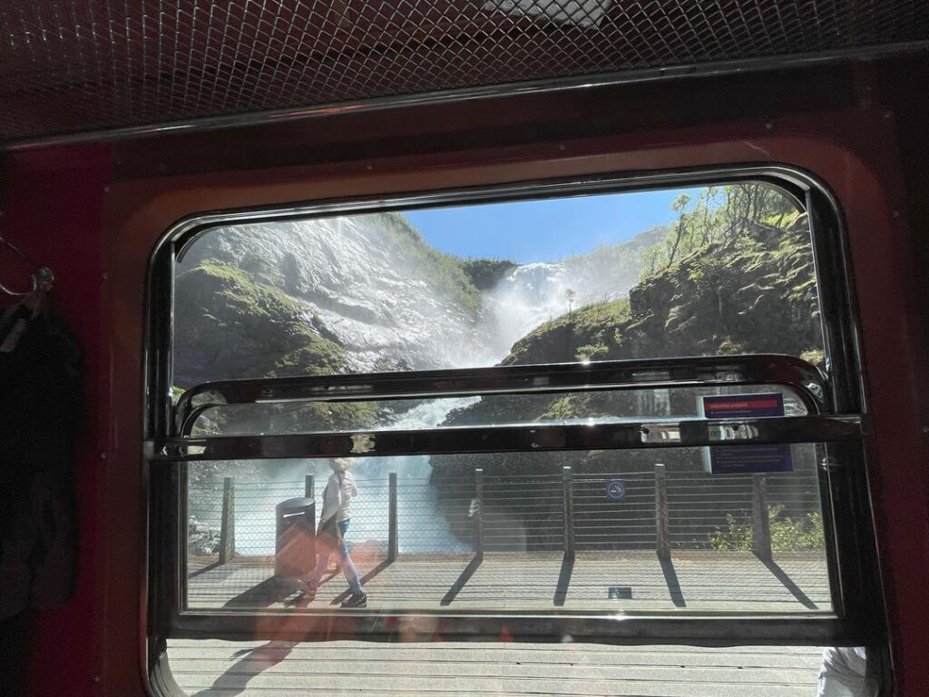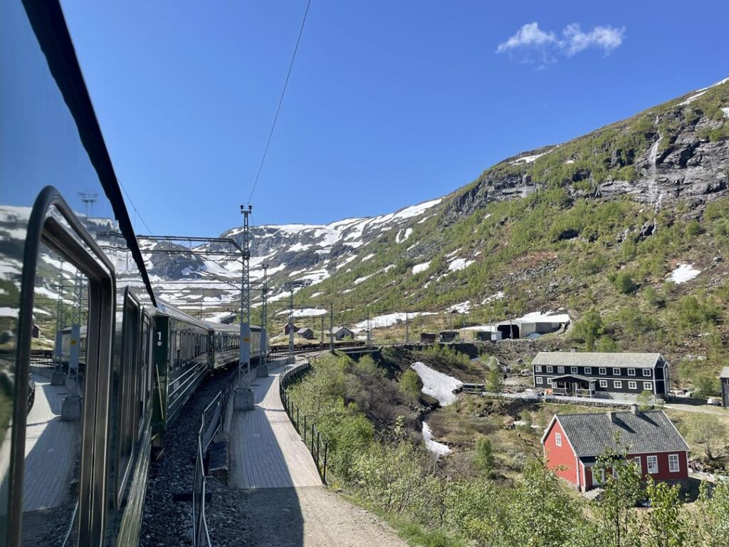 Dziś wstajemy wyjątkowo z pomocą budzika, by dojechać o czasie do turystycznej miejscowości Flam. Mająca jedynie 300 mieszkańców, przeżywa prawdziwe oblężenie w momencie zacumowania wycieczkowców z tysiącami turystów. Większość z nich ma ten sam plan co my, a mianowicie podróż zabytkową koleją Flamsban. 20 km trasa do Myrdal uważana jest za jedną z najpiękniejszych tras kolejowych na świecie. Godzinny przejazd kolejką potwierdza to. Dodatkową atrakcją jest postój przy wodospadzie Kjosfossen, obok którego można podziwiać krótki spektakl z Huldrą (nimfą) tańczącą w rytm dawnej muzyki. Po skończonej wycieczce czeka nas jeszcze darmowe muzeum związane z koleją oraz urokliwe knajpki.