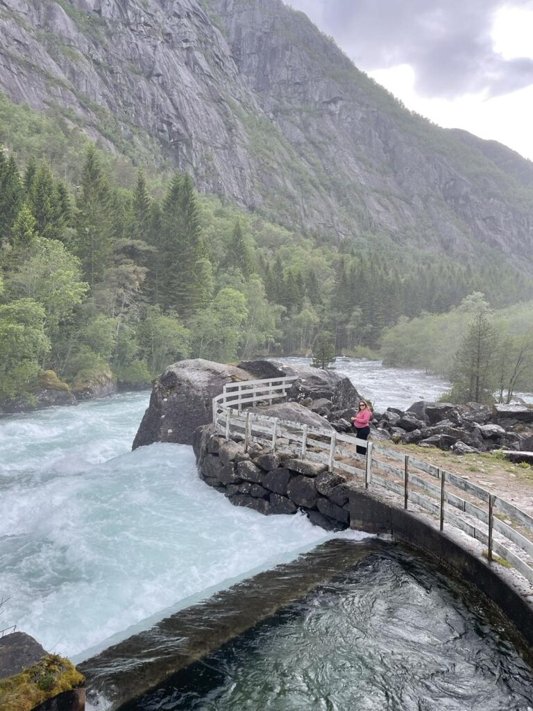 Cisza, spokój, kolejny słoneczny dzień. Jadąc dalej wzdłuż trasy Ryfylke co chwilę mijamy wodospady i niezliczoną ilość tuneli, po których pokonaniu pojawia się kompletnie inny pejzaż. W pewnym momencie zauważyliśmy unoszącą się bryzę przed nami nad mostem, to był Latefossen. Jeden z piękniejszych wodospadów w Norwegii, którego ogrom i siła, szczególnie w okresie wiosennym, jest nie lada widokiem. Woda z dużym impetem opada bezpośrednio pod most, którym przebiega trasa.