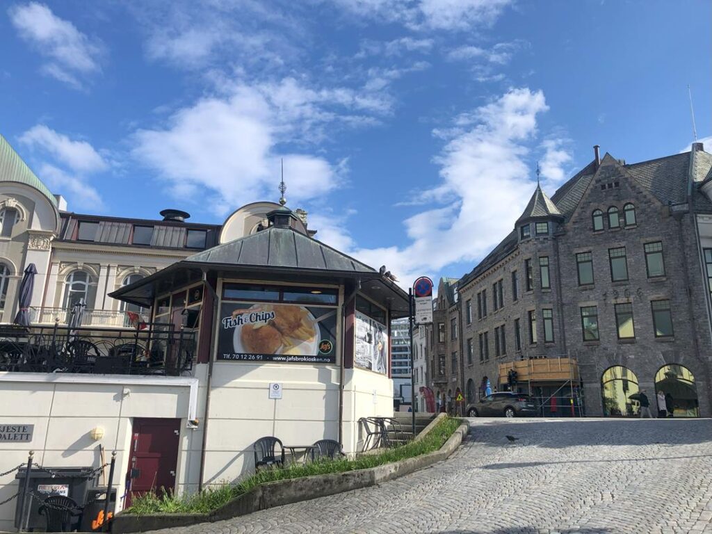 Następnie, zwiedziliśmy urokliwe centrum miasta, gdzie zjedliśmy najlepszego dorsza w panierce w lokalnym Jaffs oraz obserwowaliśmy olbrzymie meduzy, leniwie pływające w mieście. Opuszczamy miasto, przybliżając się do rozjazdu na drogę Troli, bądź ewentualnego objazdu. Noc spędzamy w okolicach miejscowości Sjoholt.