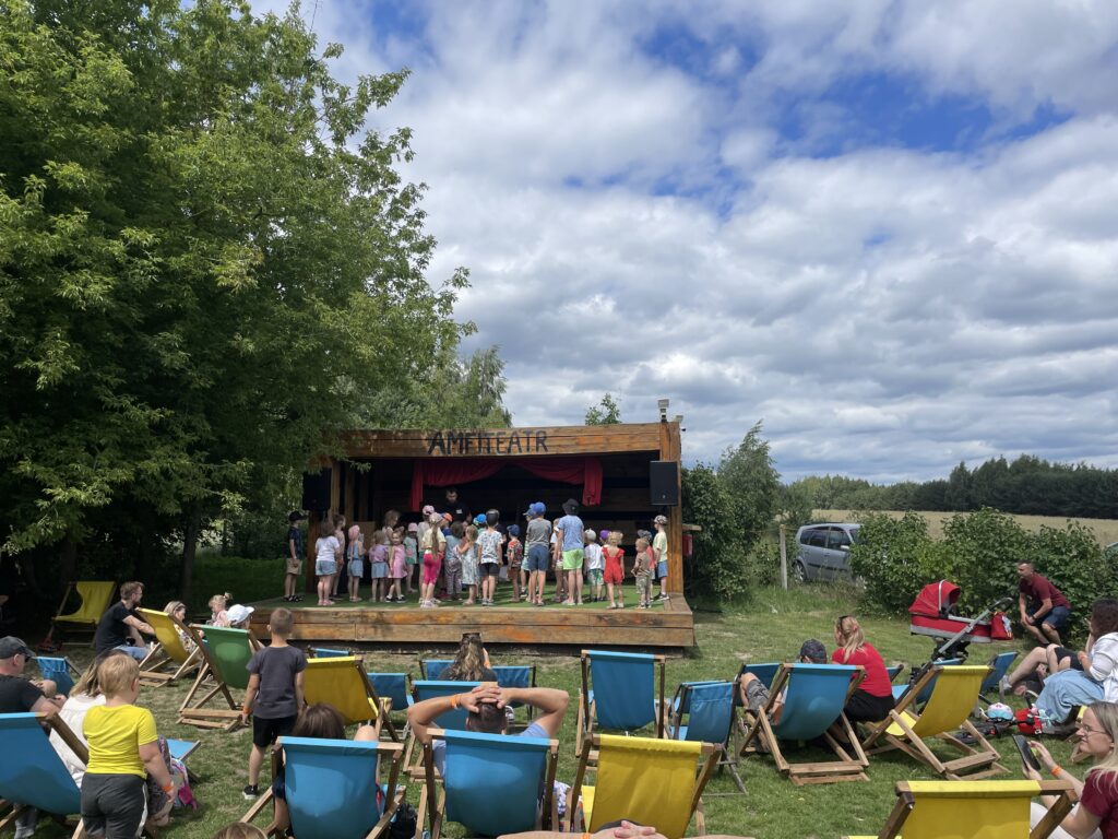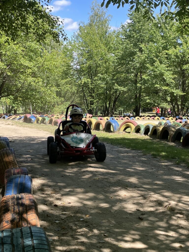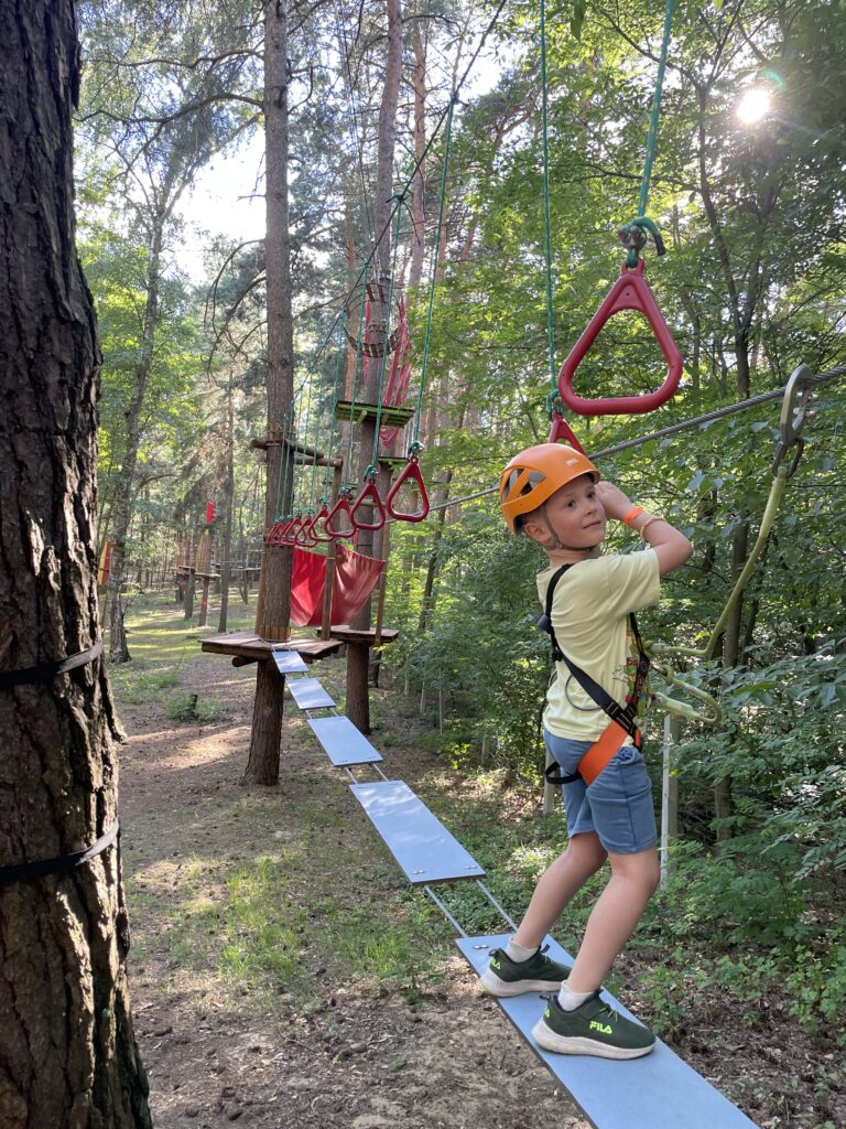 Sprawdź w Google Maps • ŁódzkieSady Klemensa to ogromny zielony park, w którym główną atrakcją jest natura. Pośród drzew można bawić się na placach zabaw, piaskownicach, niezliczonych torach przeszkód. Dodatkowo, tyrolki, dmuchańce, a nawet mini gokarty. Co pewien czas na scenie, pojawiają się artyści prezentujący swój program (trafiliśmy na magika). Jest to kolejne miejsce, gdzie dzień może minąć na świeżym powietrzu i ruchu, zamiast stania w kolejkach. Hamaki, kiełbaski z grila dopełniają piknikowy charakter tego miejsca