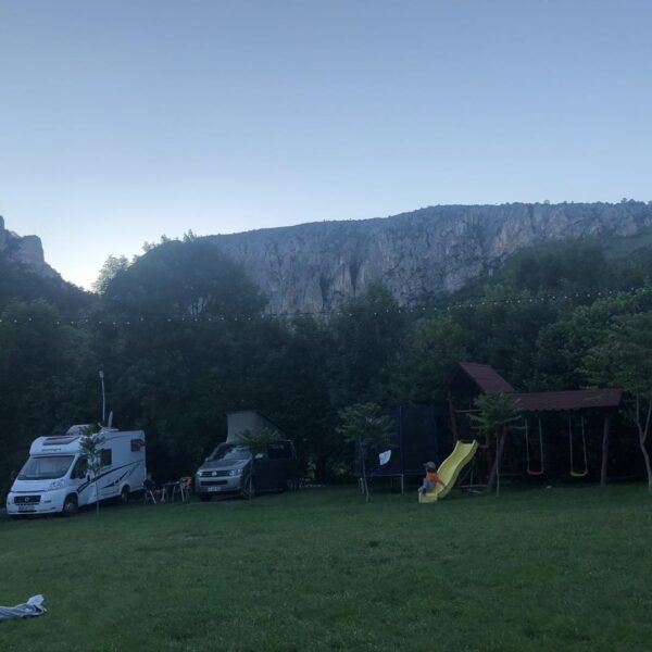 Parking 20 RON, przekąsiliśmy coś na szybko w kamperze i czas ruszać dalej – góry zachodniej Rumunii (Apuseni) i piękne jaskinie. Jedziemy ok. 145 km na camping Turi. Dojeżdżamy ok 17, więc do końca dnia stawiamy na relaks. Okazuje się, że camping jest super, akurat jest sobota, więc trochę rodzin z Rumunii spędza tu weekend – robią ogniska, dużo dzieci ,bardzo przyjemnie spędzamy czas, kiełbaska ,prysznic , wymiana toalety i spać 🙂