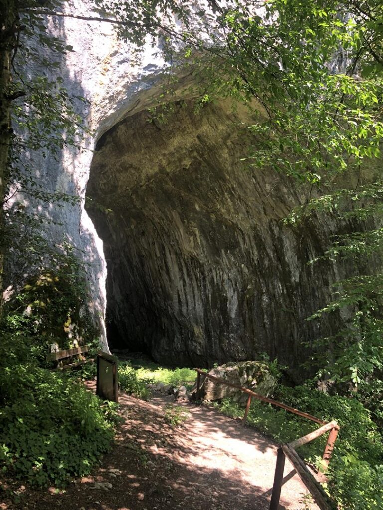 Oficjalny parking znajduje się ok km od wejścia, polecamy się tu zatrzymać, by potem swobodnie wczuć się w klimat lekkiego trekkingu 🙂 – do jaskini prowadzi droga szutrowa, kończy się urokliwą ścieżką po schodach na górę, gdzie można kupić bilety i pamiątki. Jest zdecydowanie mniej ludzi niż w poprzedniej jaskini, wejście jest co godzinę, więc musimy trochę poczekać, w tym czasie przewodniczka opowiada nam co nieco o jaskini, która ma ok 10 mln lat (akurat naszą grupę w jaskini będzie prowadzić dziewczyna, która nie zna angielskiego, więc dobrze dowiedzieć się czegoś nieco wcześniej). Wejście do jaskini daje przedsmak tego co nas czeka, jest olbrzymie, jak otwarte wrota między drzewami. Po wejściu robi się coraz lepiej… i tak jest już do końca. Jaskinia zachwyca – jest olbrzymia (ok 6 km trasa, z której dla turystów jest udostępniane 1,5km), wysoka – miejscami wchodzimy w przestrzenie, które mają kilkanaście lub nawet kilkadziesiąt metrów, mroczna – panujące kolory to szary, czarny, kremowy i absolutnie magiczna. Klimatyczne podświetlenie przenosi nas skojarzeniami do Morii z Władcy Pierścieni. Jest zupełnie inna niż Jaskinia Niedźwiedzia (choć i tu odnaleziono szkielety niedźwiedzi) i jej klimat zdecydowanie bardziej do nas przemawia. Połączenie Morii i Księżyca. Jest bardziej prosta – nie ma aż tylu nacieków skalnych, stalaktytów czy stalagmitów, ale te, które się pojawiają często przyjmują ciekawe kształty. Sama trasa też jest dynamiczna – oprócz prostych chodników, dużo jest schodów – wejścia w górę, zejścia w dół. I kolejny szkielet niedźwiedzia. Te 1,5 kilometra starczy, by poczuć ogrom natury i przenieść się do innego świata. Bardzo polecamy. A po wszystkim przy parkingu jest knajpka z dobrym Papanasi ;). Wsiadamy w kampera i po 20 min jesteśmy na campingu :).